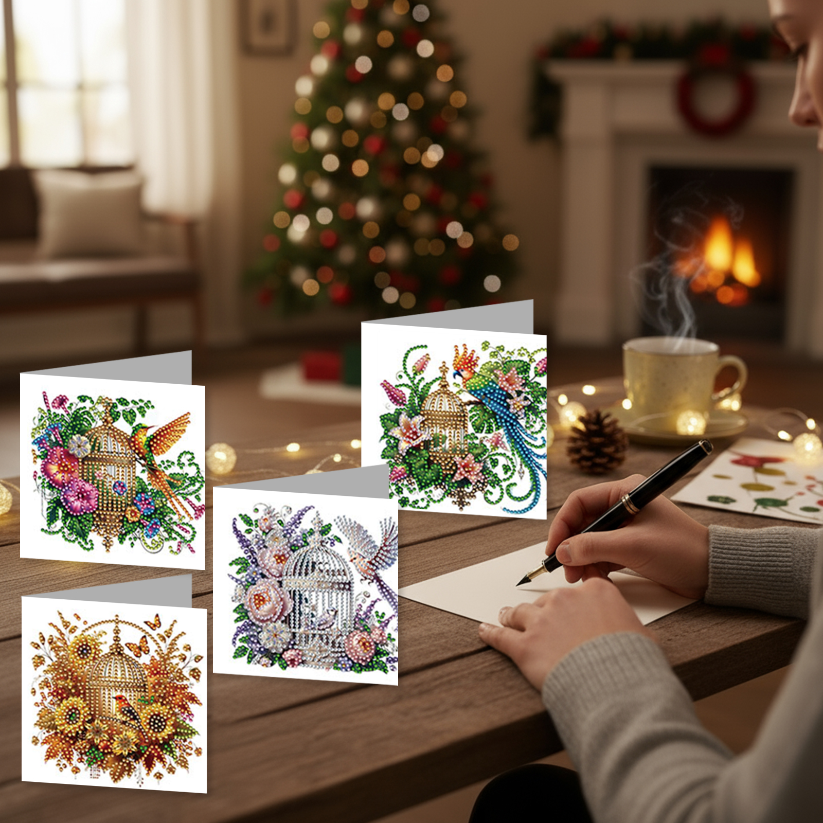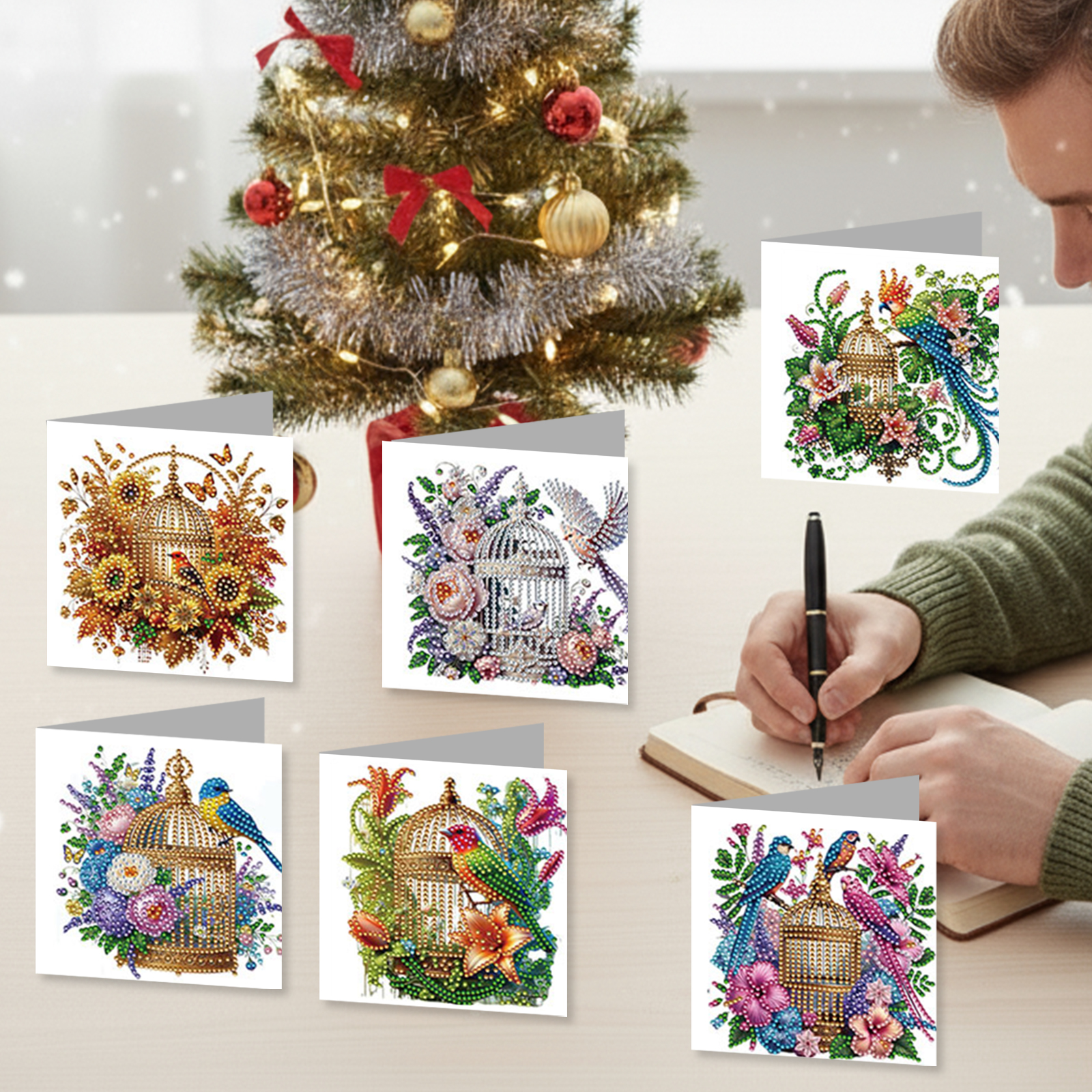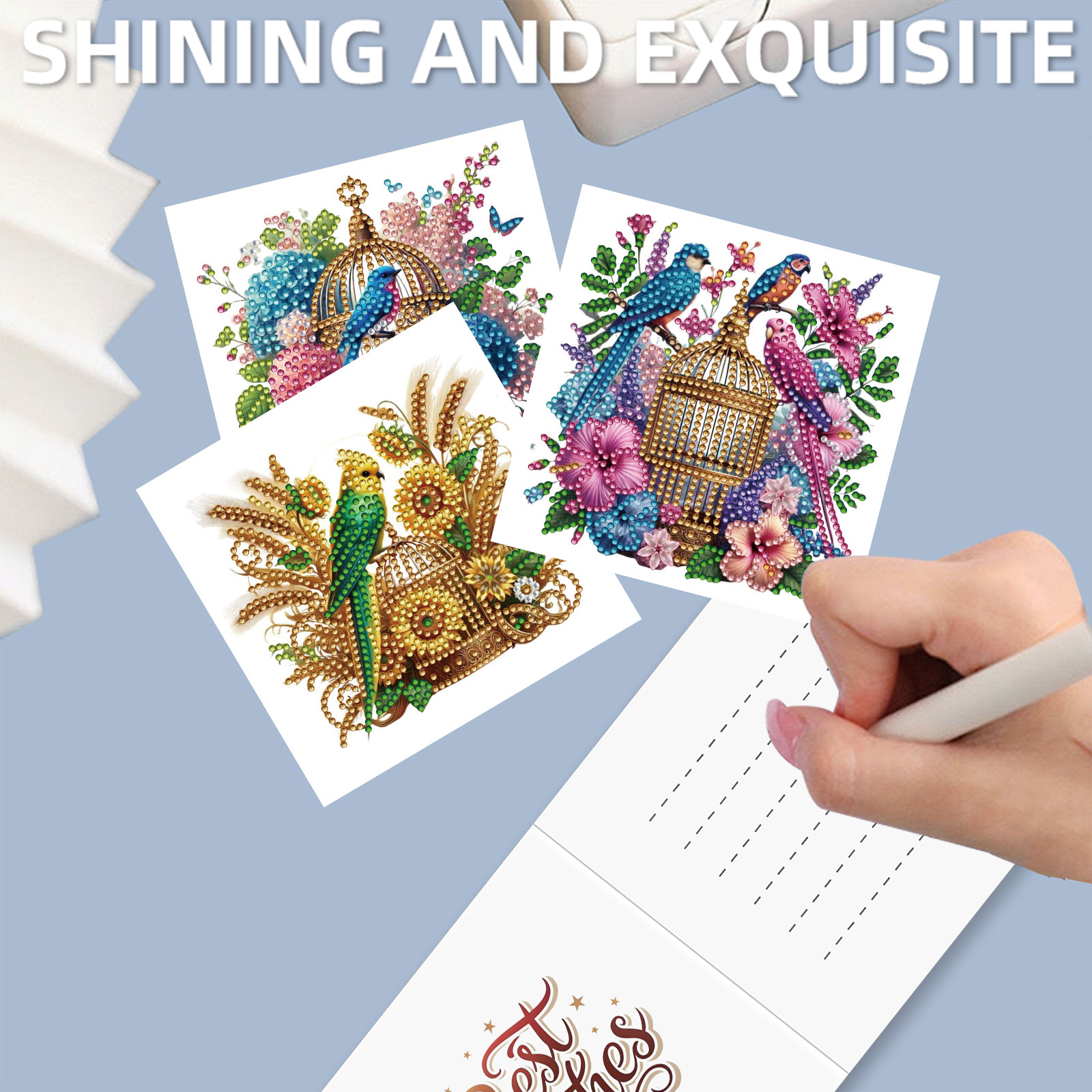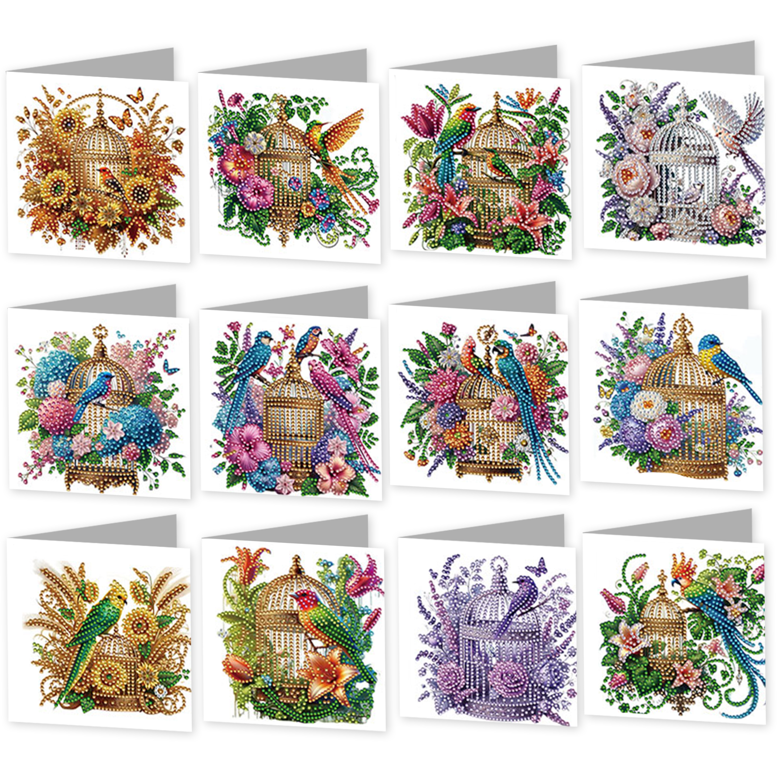 12Pcs Birdcage DIY Diamond Painting Greeting Card Kit for Adults Holiday Gifts