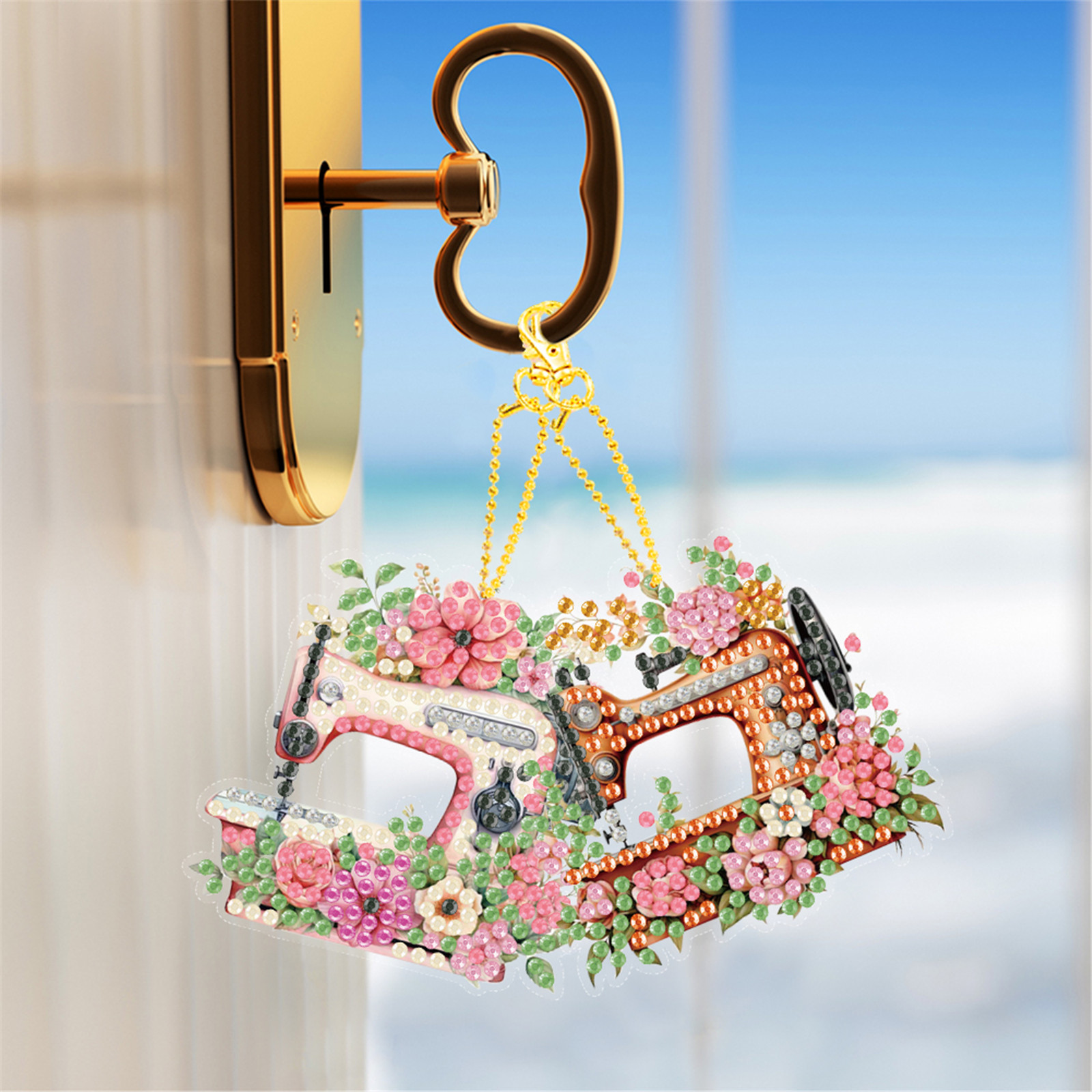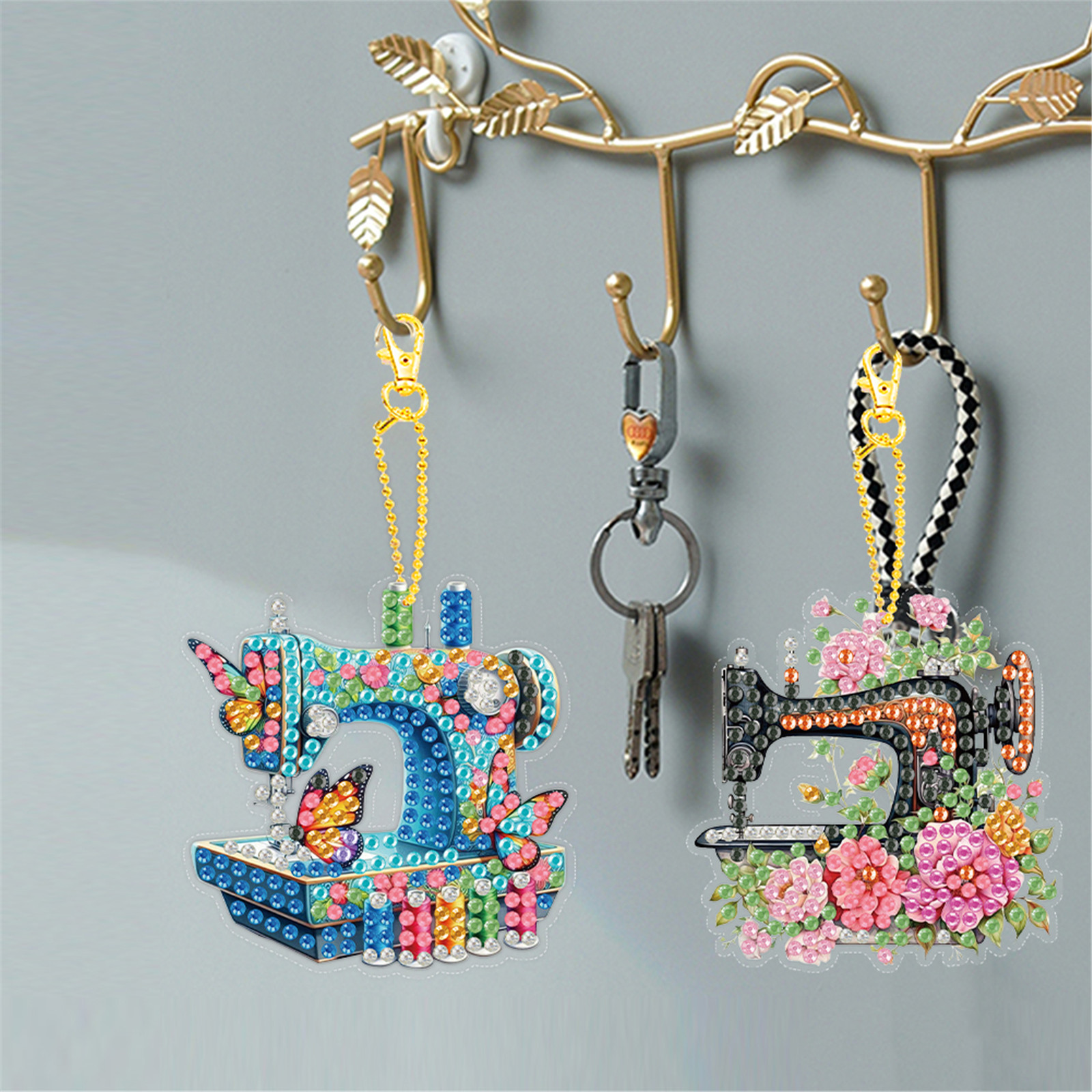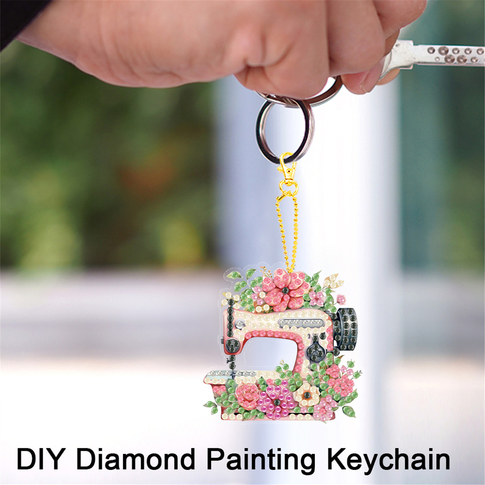 15Pcs Sewing Machine DIY Double Sided Diamond Painting Keychain Kits for Adults