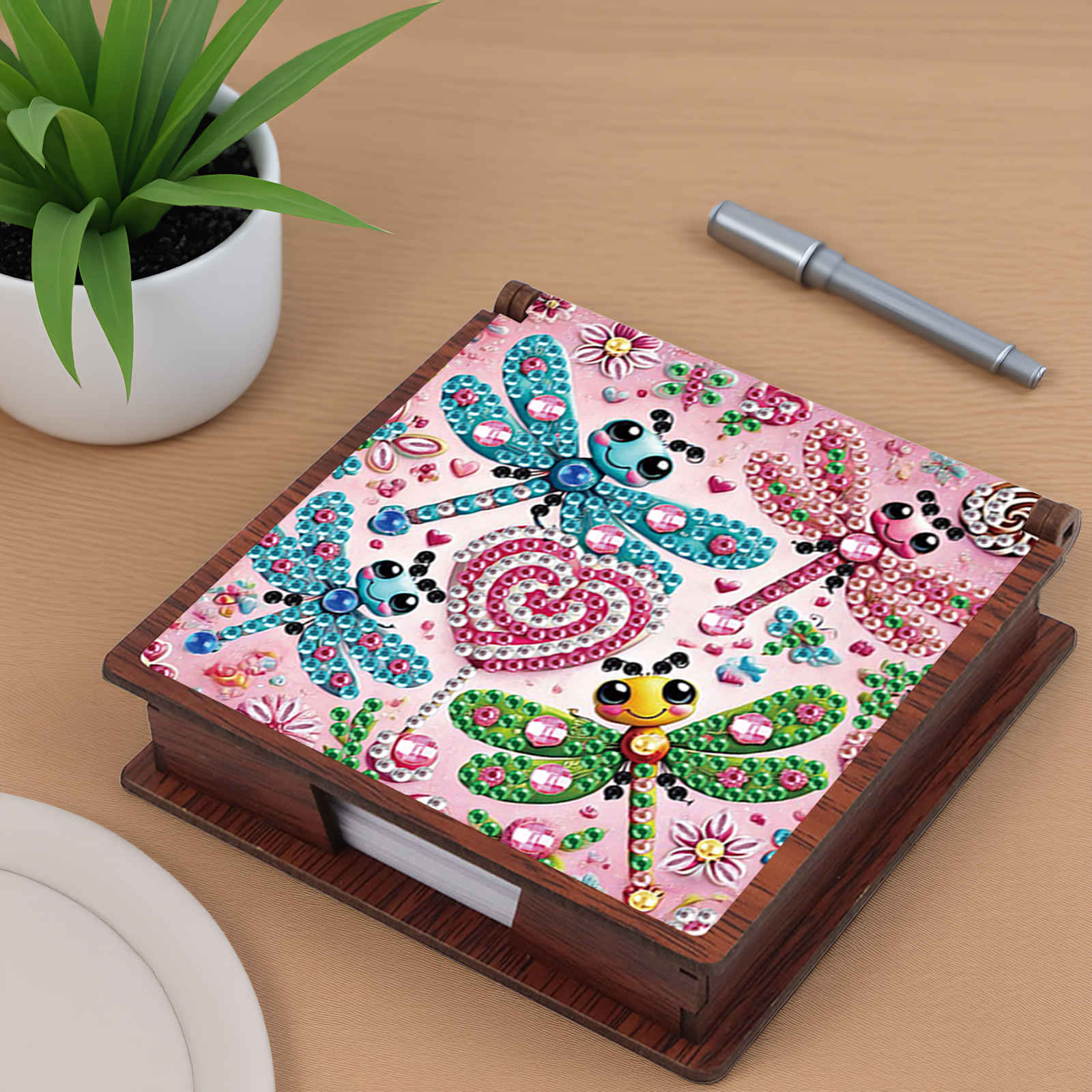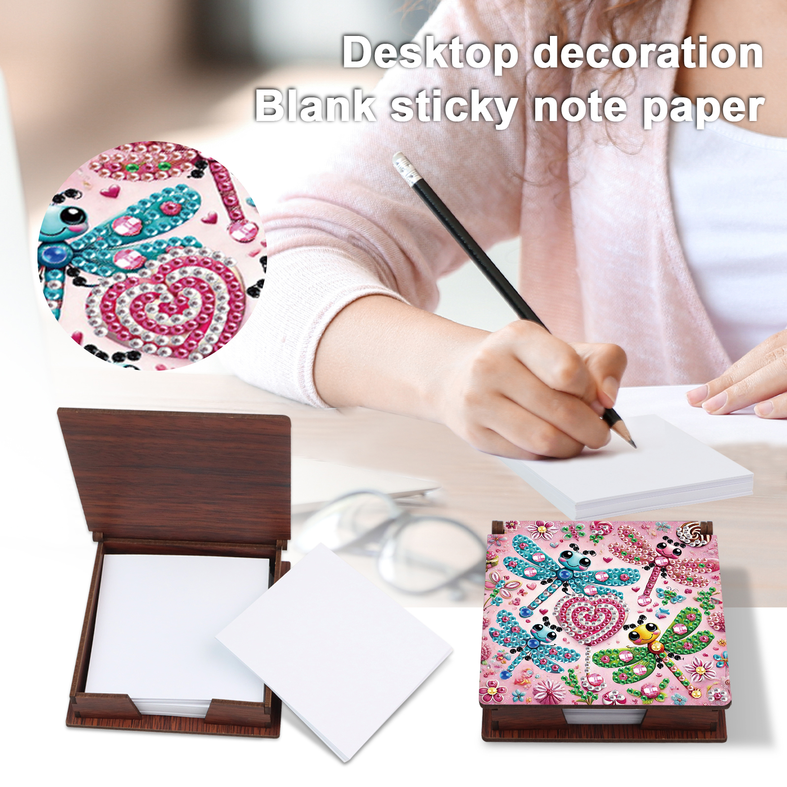 Wooden DIY Dragonfly Diamond Painting Kit Note Box with 160 Papers for Office