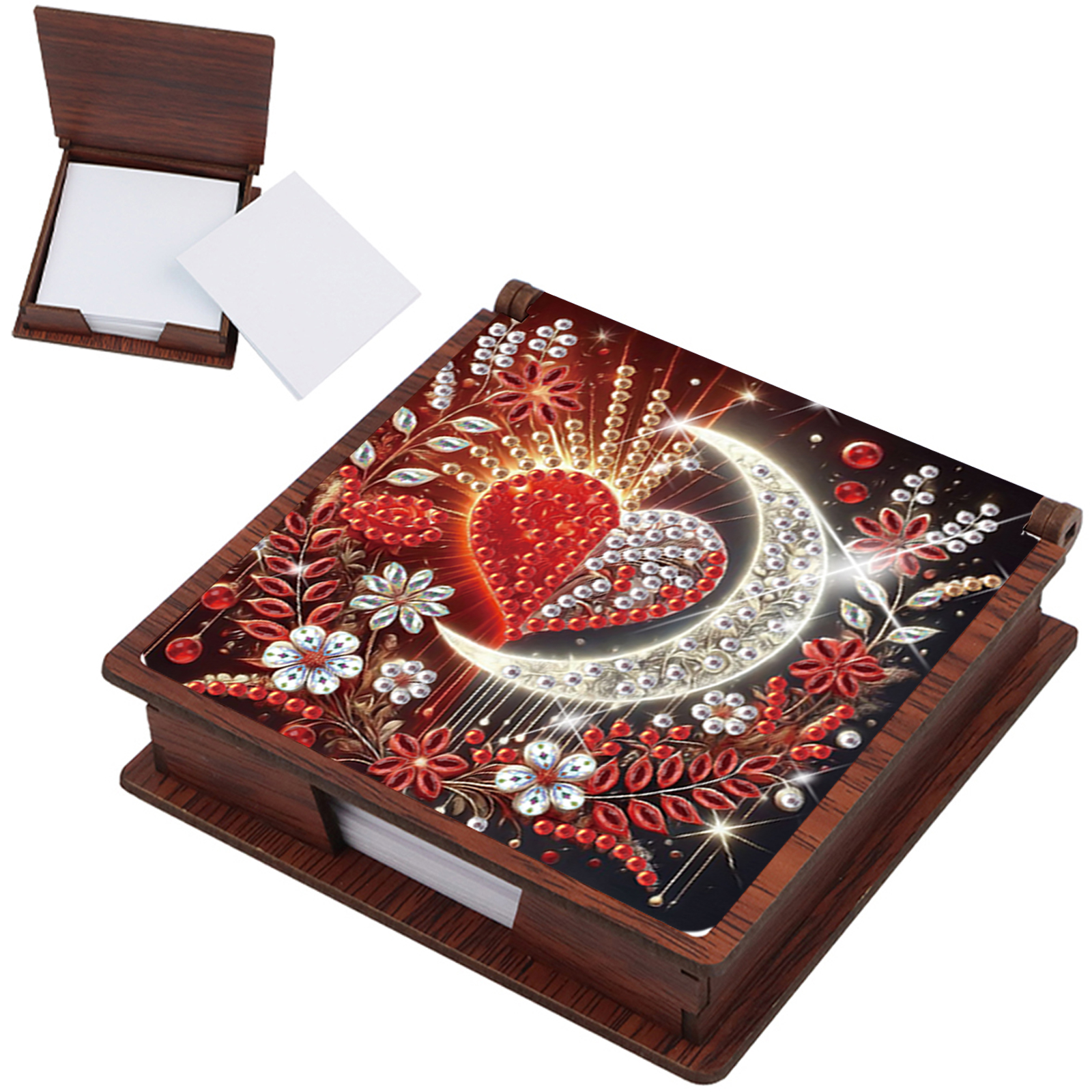 Wooden DIY Moon Heart Diamond Painting Kit Note Box with 160 Papers for Office