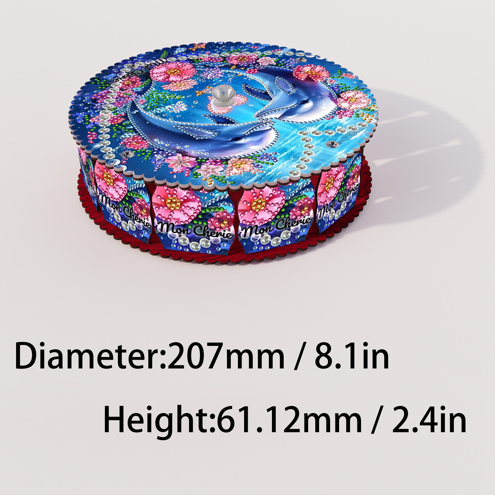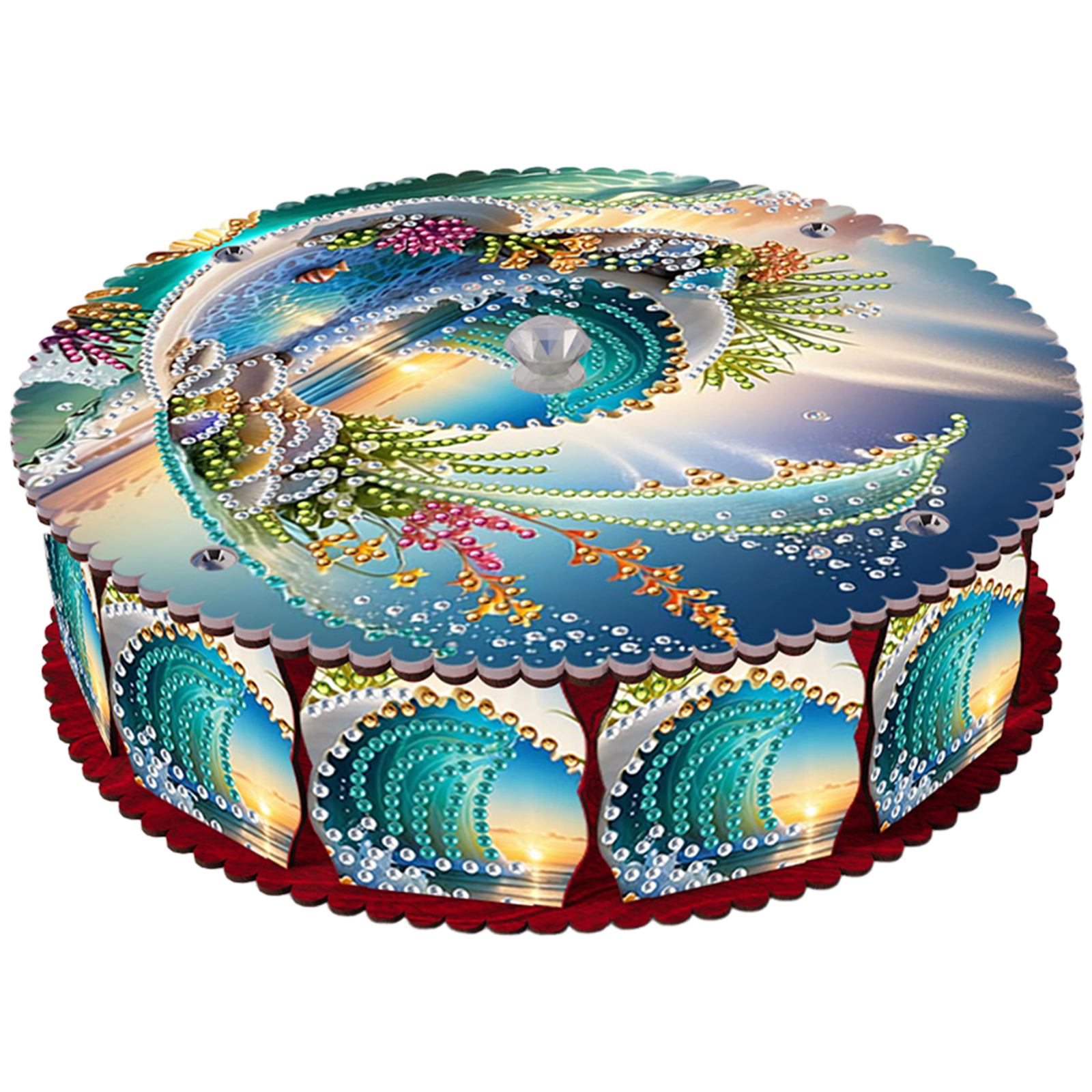 Dolphin 5D DIY Diamond Art Painting Snack Box with Lid Wood Storage Organizer