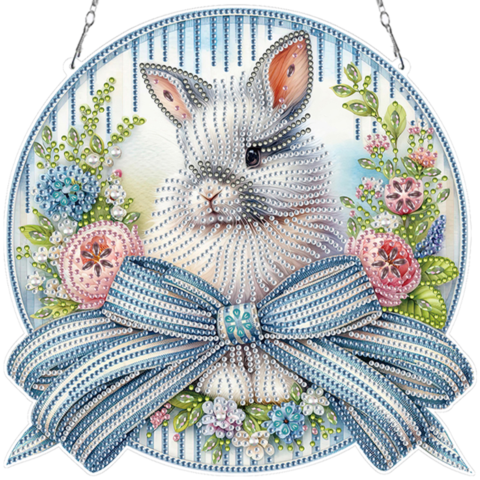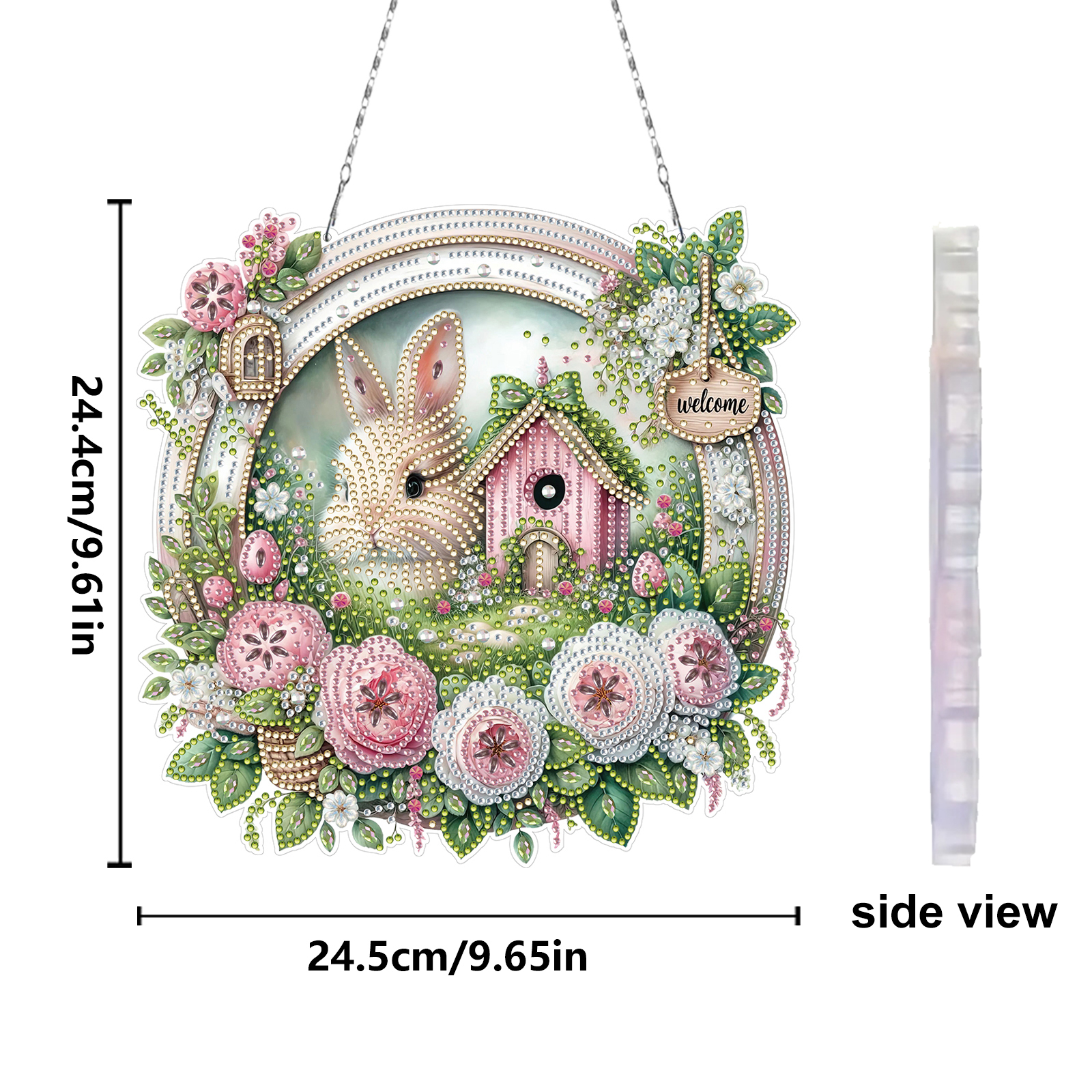 Easter Bunny DIY 2D Flat Acrylic Double Sided Diamond Painting Hanging Pendant