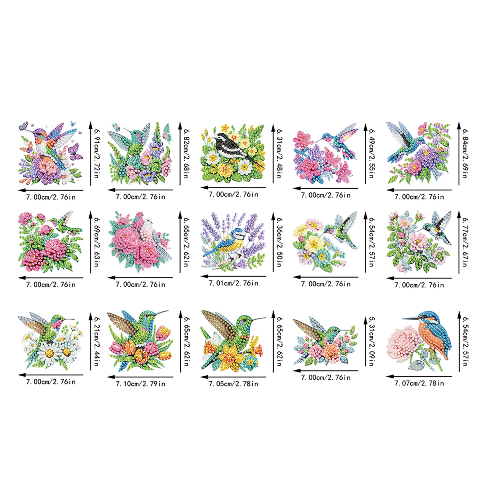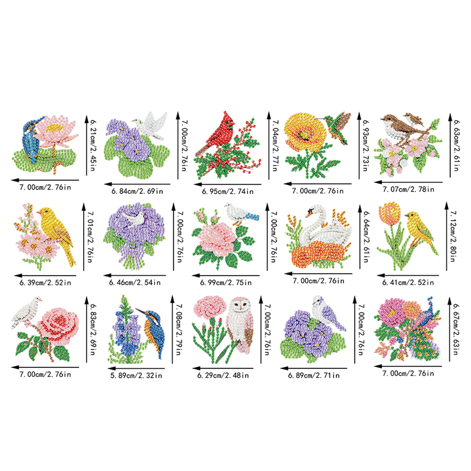 15Pcs Flowers Birds DIY Double Sided Diamond Painting Keychain Kits for Adults