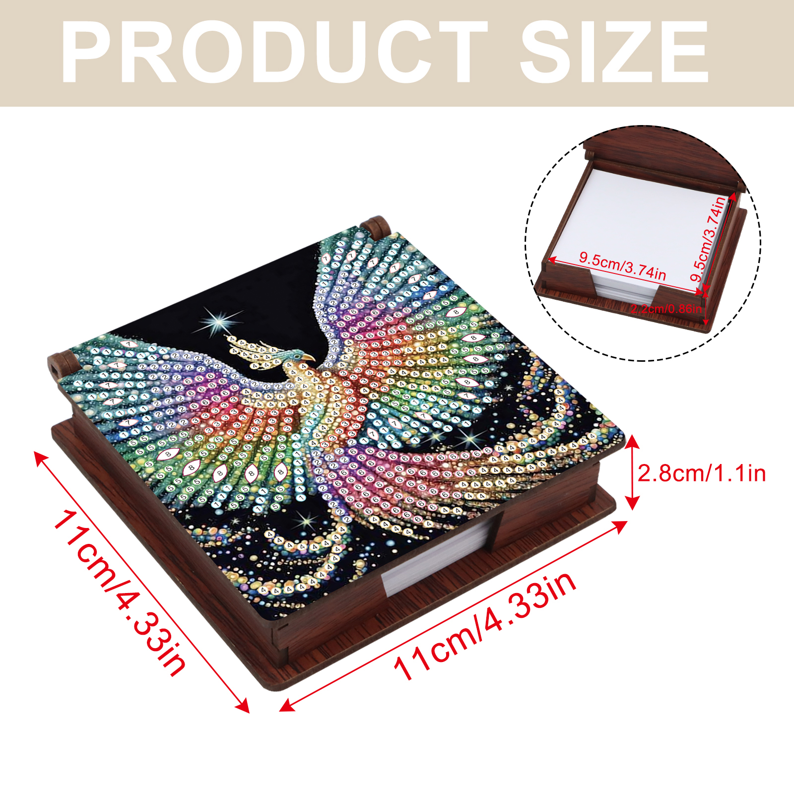 Wooden DIY Phoenix Diamond Painting Kit Note Box with 160 Papers for Office