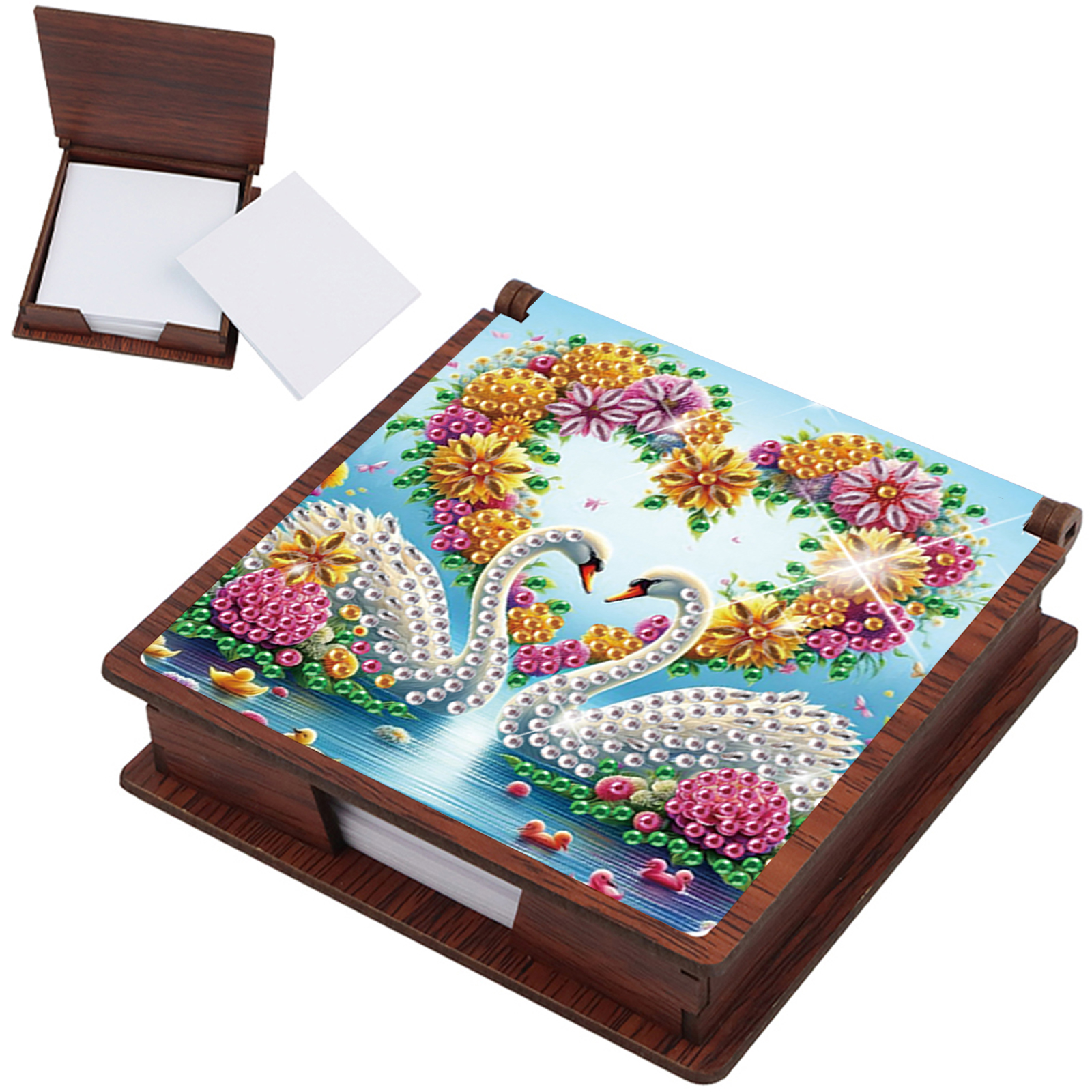 Wooden DIY Flower Swan Diamond Painting Kit Note Box with 160 Papers for Office