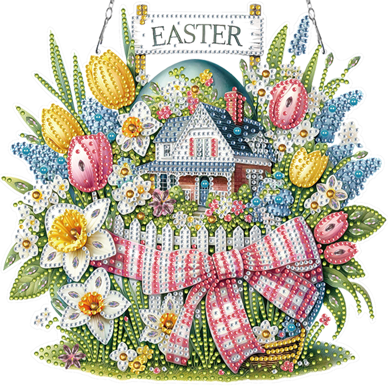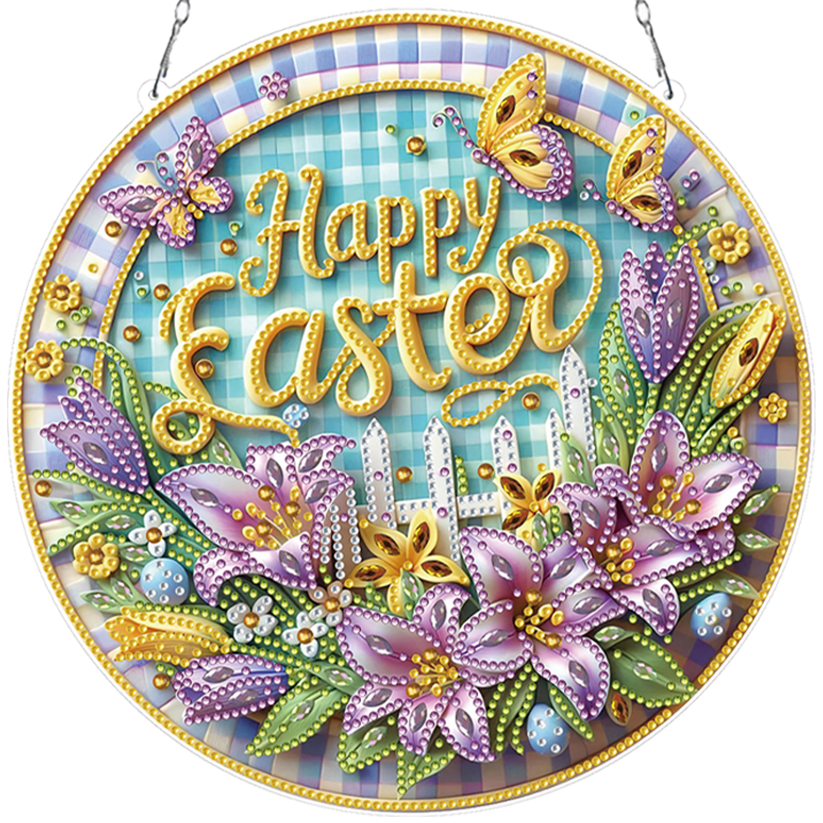 Easter Flowers DIY 2D Flat Acrylic Double Sided Diamond Painting Hanging Pendant
