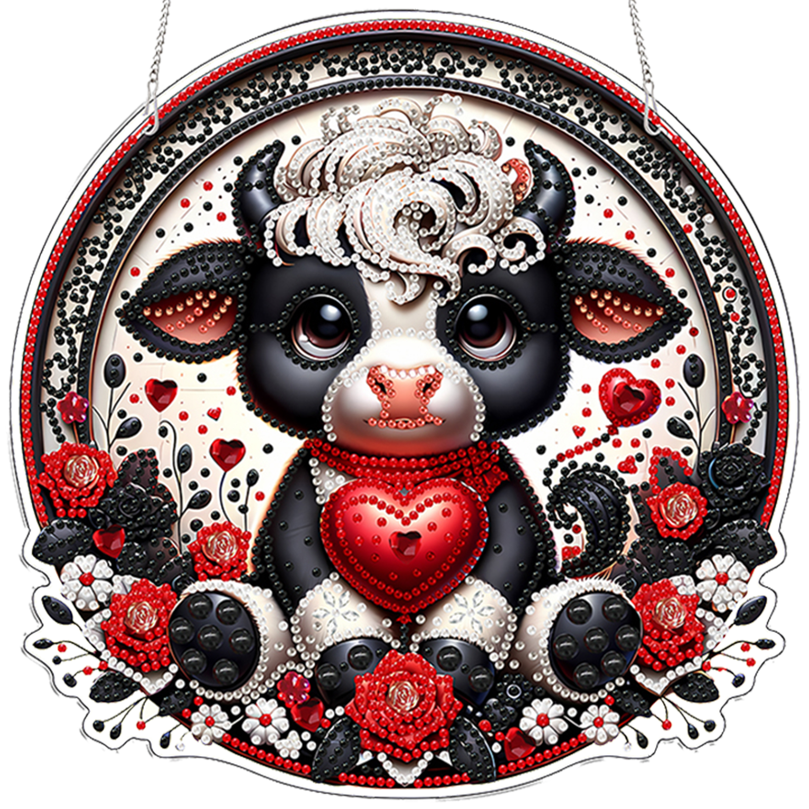 Cow DIY Diamond Painting Hanging Pendants Acrylic Crafts Kit for Home Wall Decor