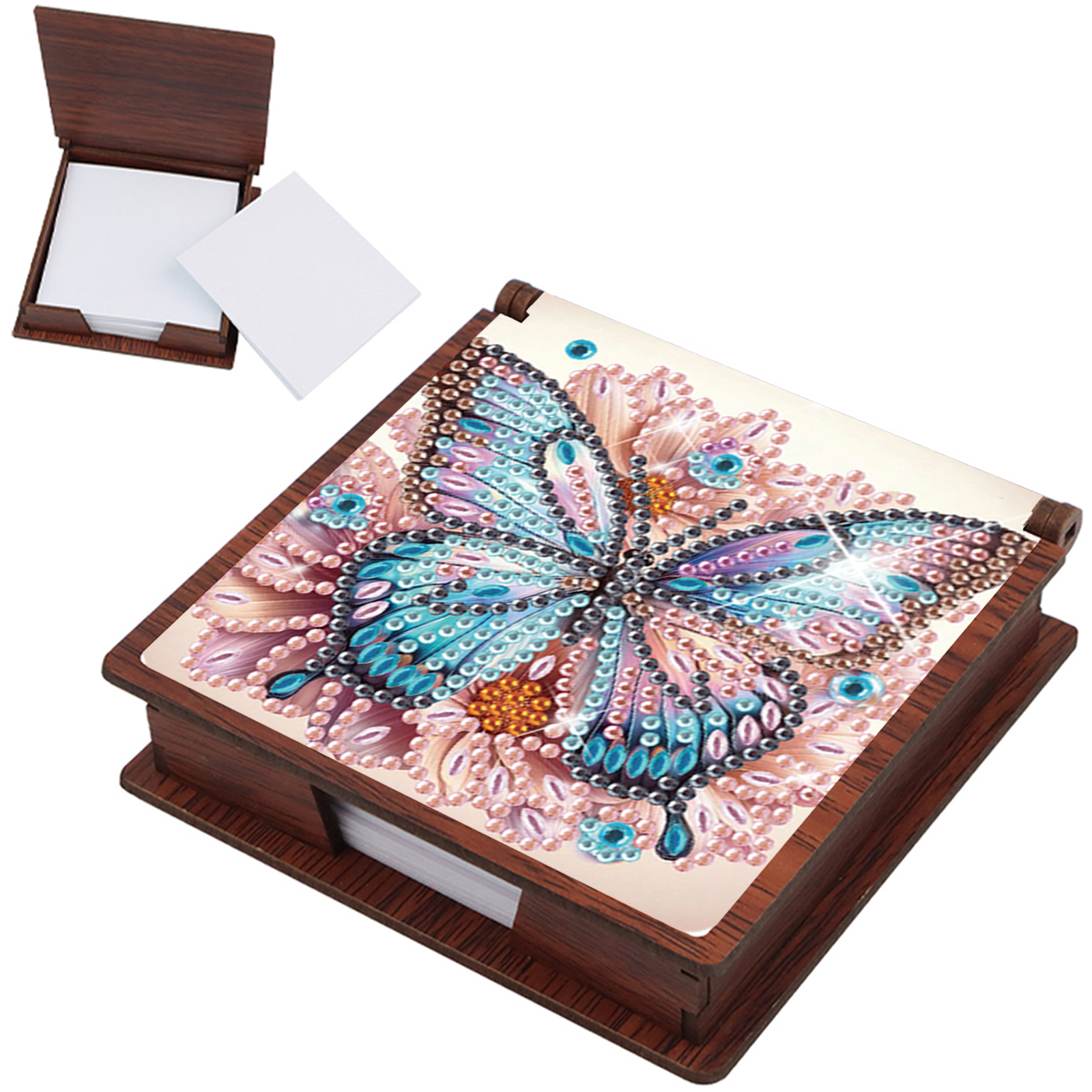 Wooden DIY Butterfly Flower Diamond Painting Kit Note Box with 160 Papers Gifts