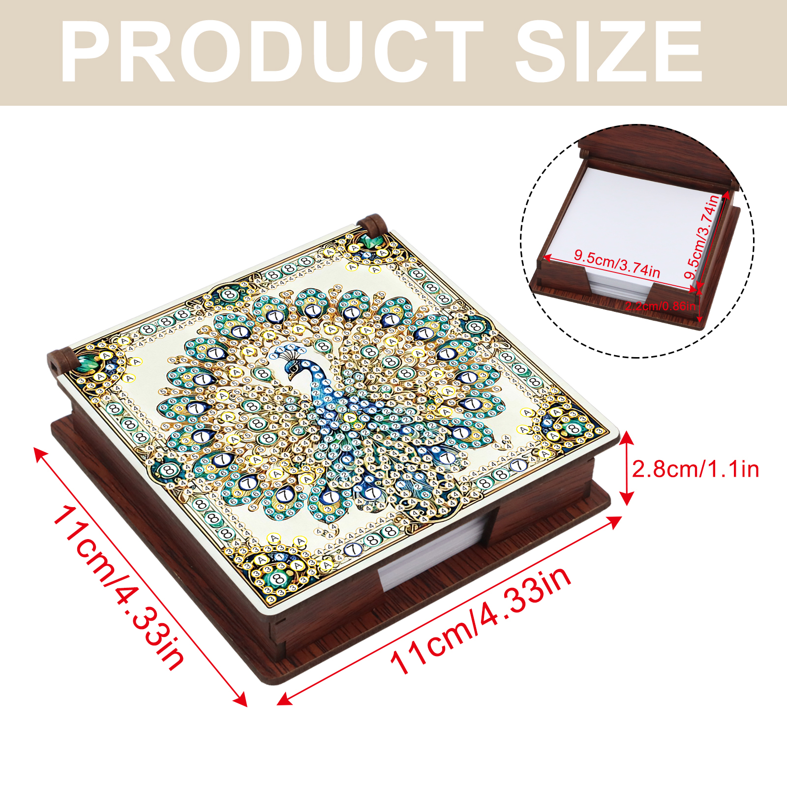 Wooden DIY Peacock Diamond Painting Kit Note Box with 160 Papers for Office Desk